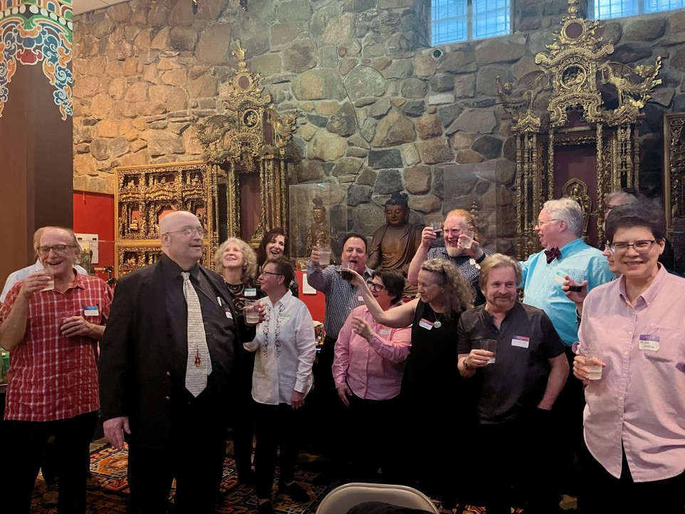 Alumni and friends of the Collegium Musicum Wagneriensis gathered at the Jacques Marchais Museum of Tibetan Art for dinner and reminiscences.